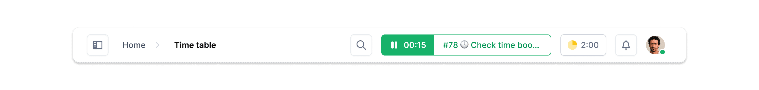 Developers, consultants, creatives log their time directly on the tasks they're working on. No separate tools, no context switching. The time tracker runs in the header, always visible, always ready. One click, and time is running.