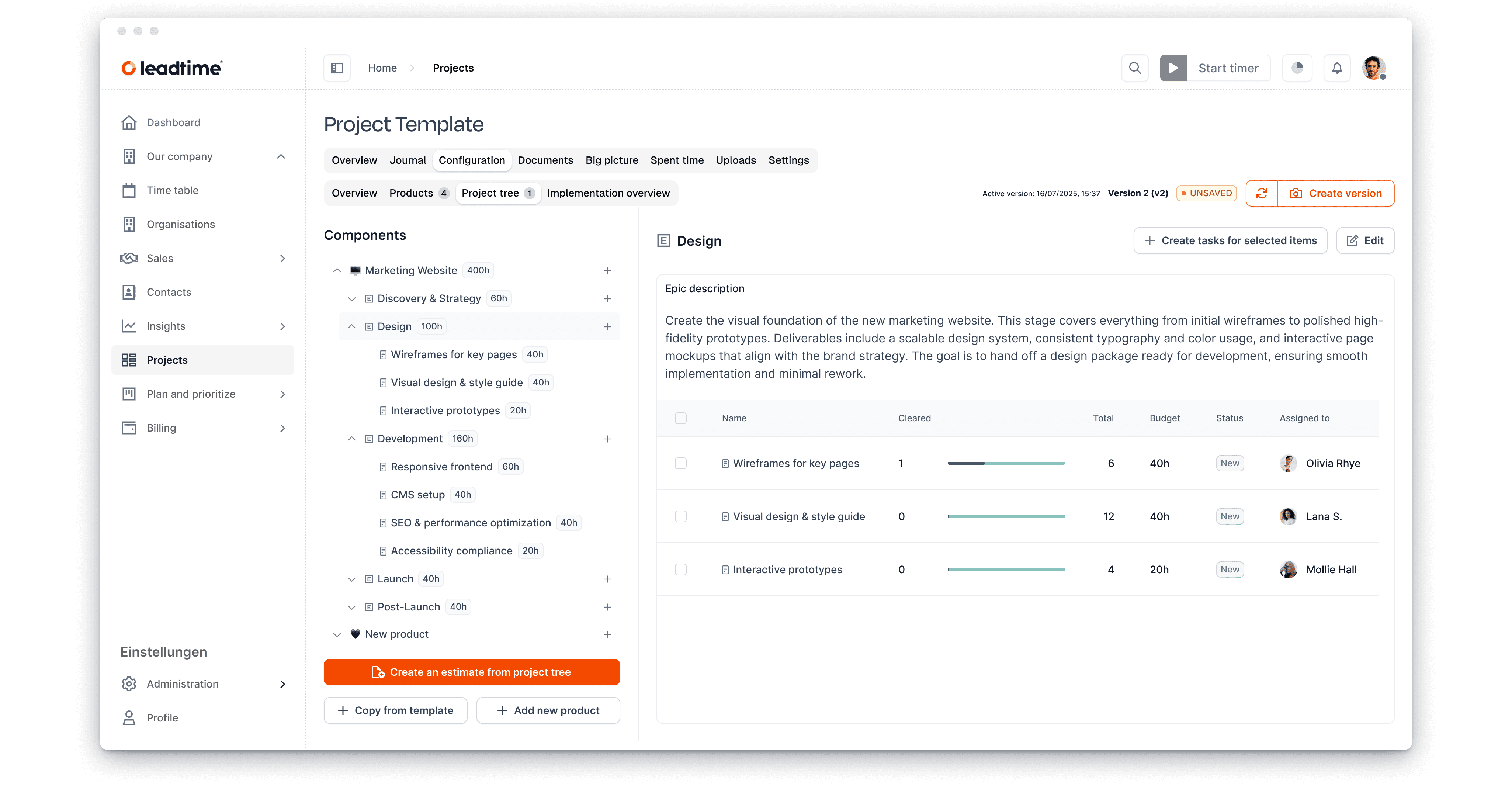 Leadtime automatically generates a detailed specification from your tickets, tasks, and change requests. This spec isn't static – it lives with the project. Every change is documented. Every change request is tracked.