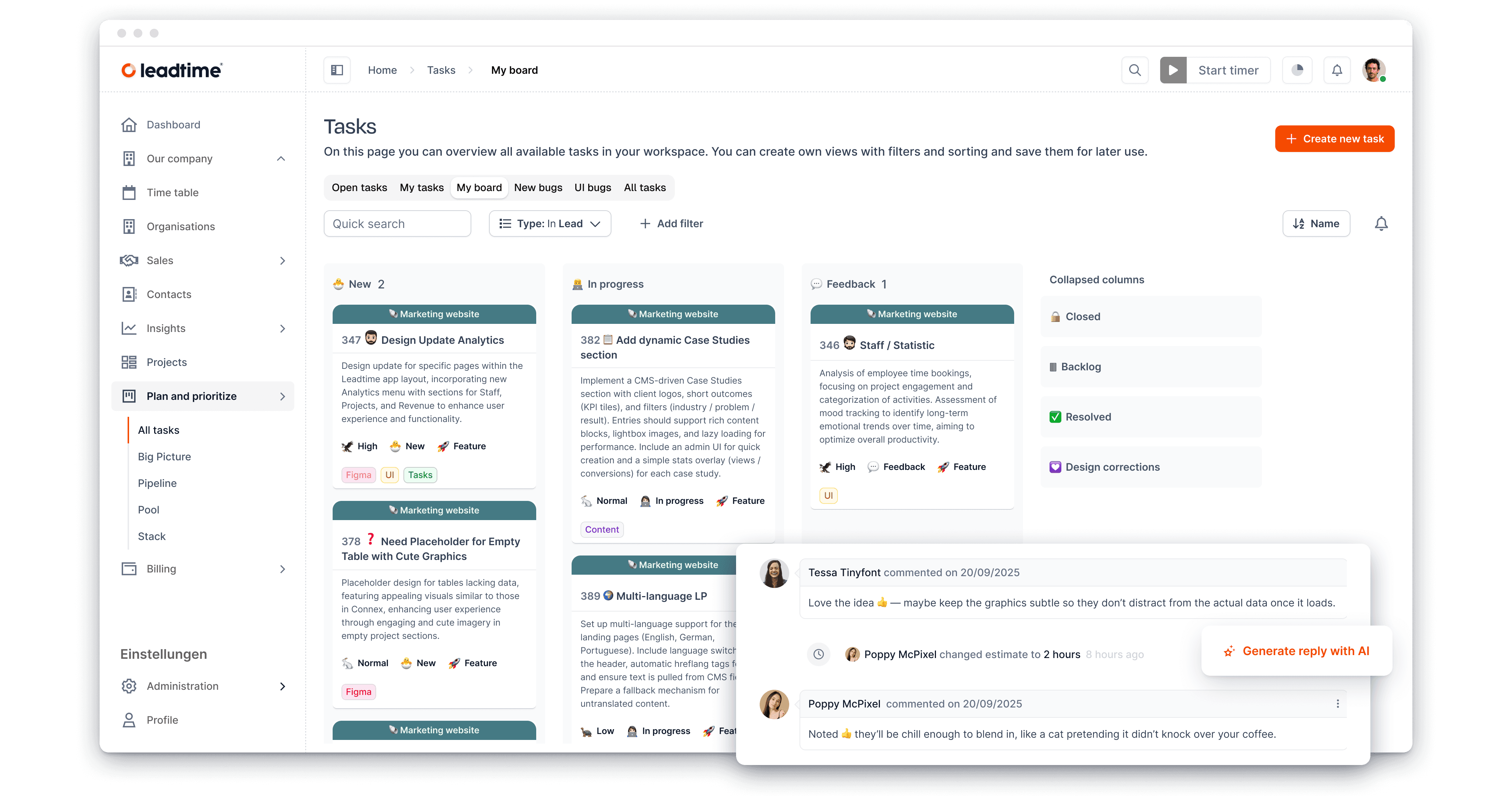 This is exactly the gap Leadtime addresses. Instead of giving you a blank board and leaving the rest up to you, Leadtime provides a working agency operating system out of the box – with built-in process logic, role definitions, and handover mechanisms that work from day one.