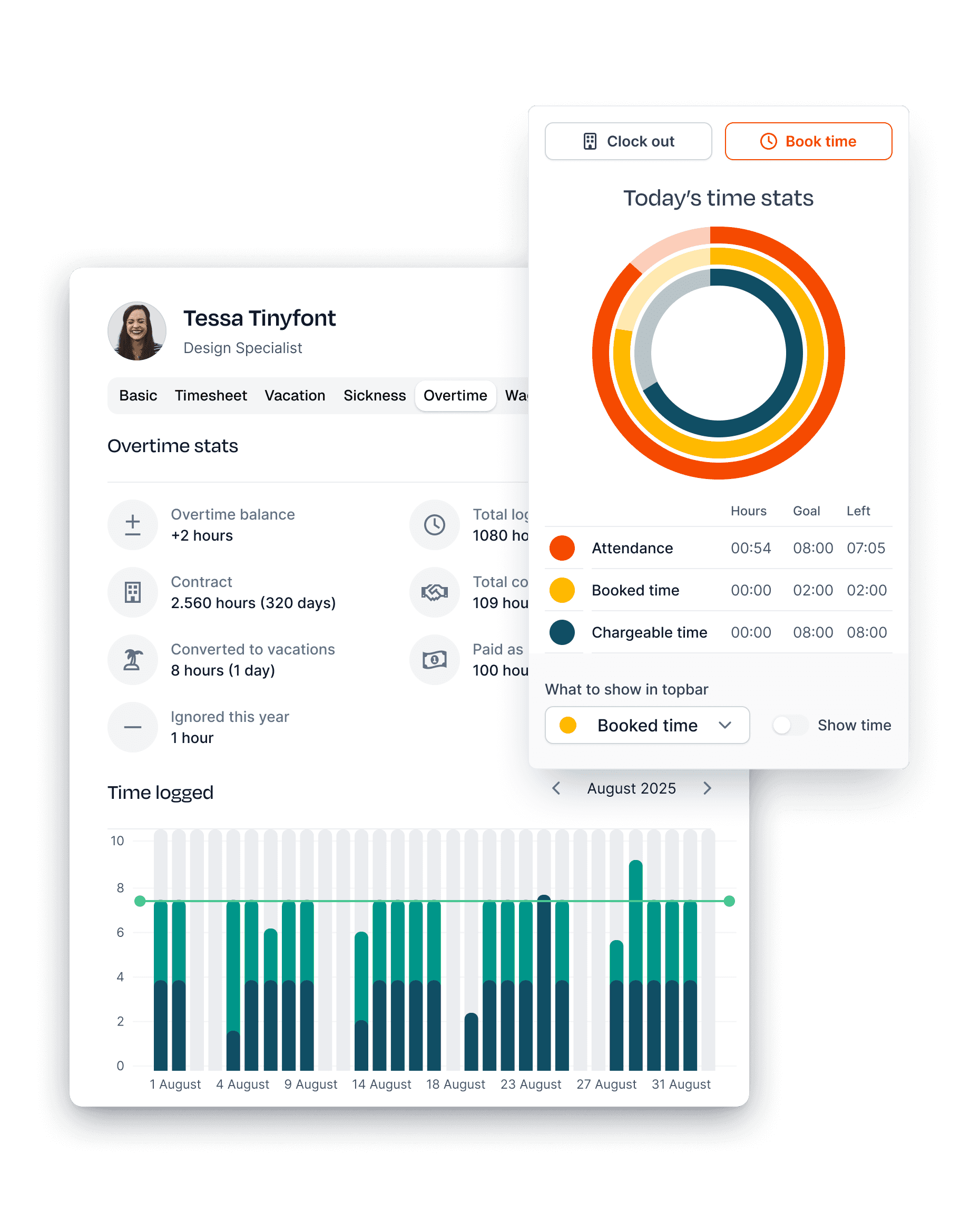 Leadtime’s time rings put daily targets for attendance, logged work, and billable time at the center of your team’s routine. Define individual billable hour goals per employee—fair, ambitious, and tailored to their role. These targets create clarity, motivate your team, and give managers a solid foundation for planning and steering workloads.